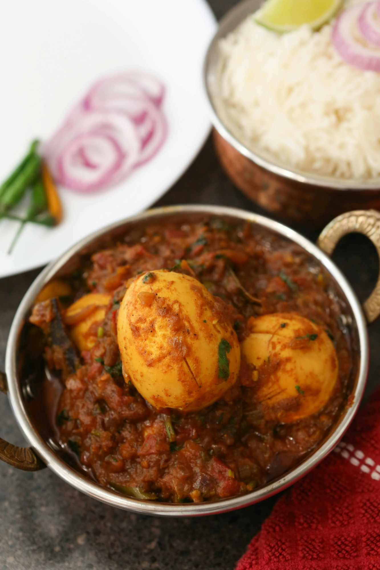 wybrany składnik zanurzony w bardzo ostrym i aromatycznym curry z ziemniakami, cebulą, papryką i chili -